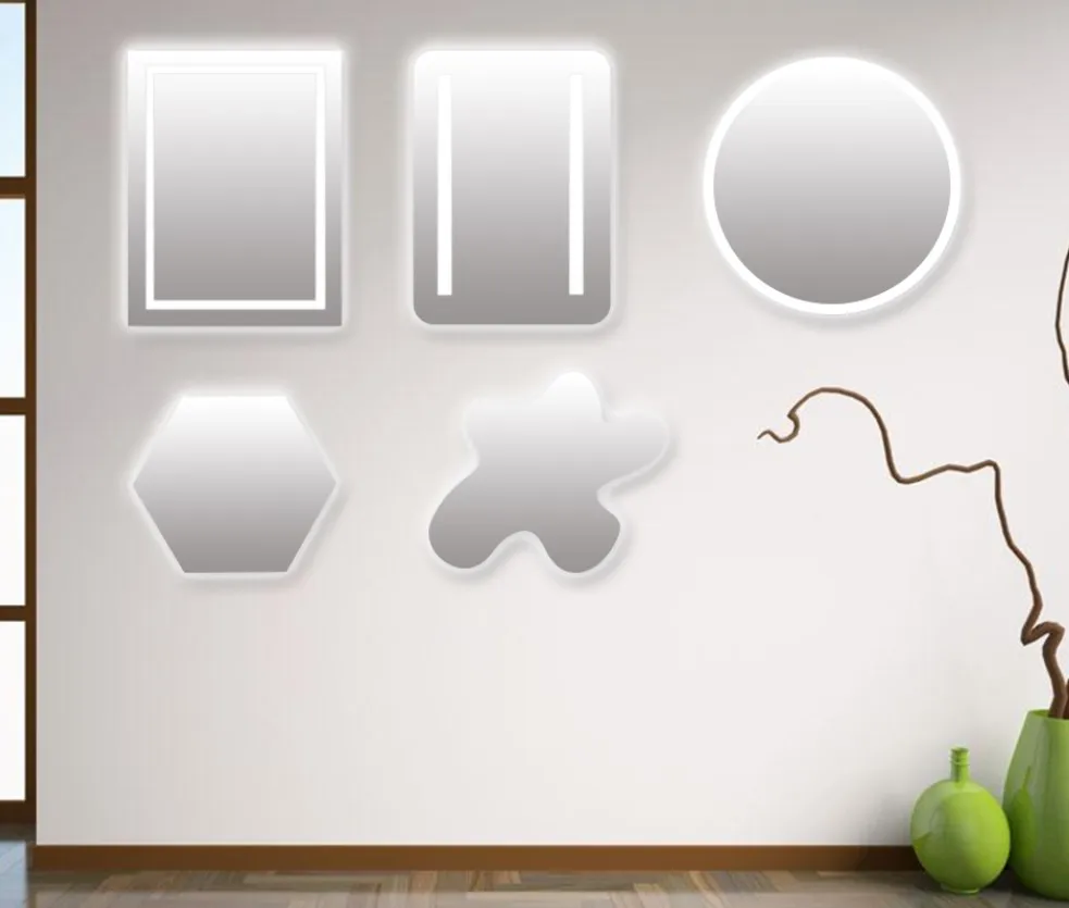 By using sanding or laser technology behind the mirror, the mirror can transmit light, and the pattern of the light-transmitting part can be made according to your needs.