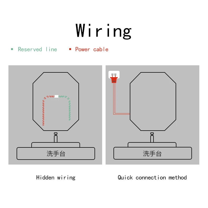 There are two ways to connect the mirror, one requires a plug and socket, and the other is direct wiring;Regarding plugs, we can provide corresponding plugs according to different countries of use.