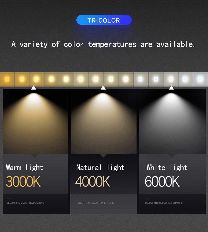 The color temperature of the light can be selected from 1000k-9000k, or two-color light; regarding the brightness, the brightness of each lamp bead is 16LM, and you can choose a tight lamp bead arrangement and a loose lamp bead arrangement.