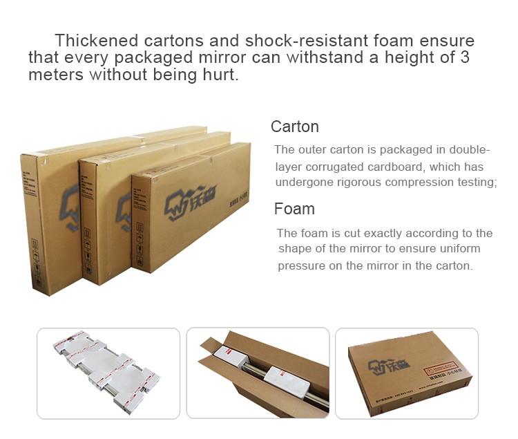 Q: What should I do if the mirror is damaged during transportation?A: For each batch of goods, we will provide sturdy packaging to prevent transportation damage. But if you have this issue, please take some photos and contact our customer service as soon as possible. We or the insurance company will compensate you.6.